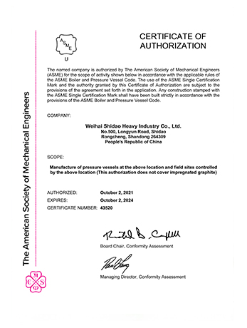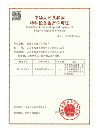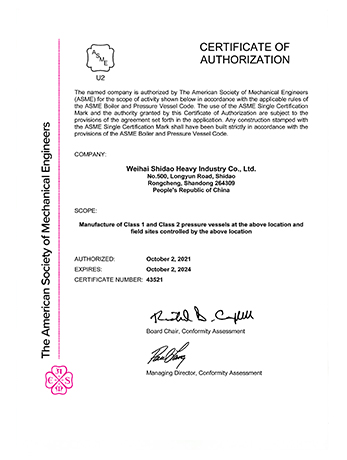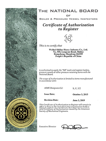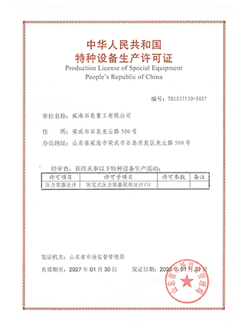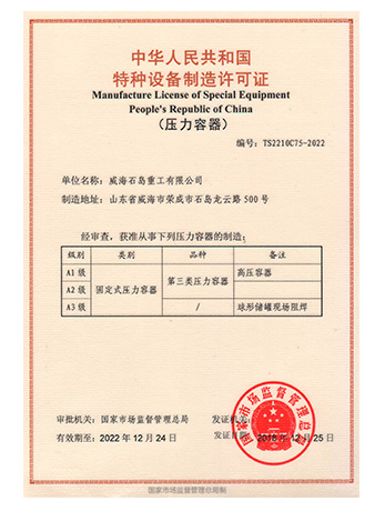 威海石島重工有限公司秉承了泰山集團(tuán)悠久的鍋爐壓力容器制造經(jīng)驗(yàn),相繼取得了國(guó)家正式頒發(fā)的A1、A2、A3類壓力容器制造和設(shè)計(jì)許可證。隨著產(chǎn)品的外向發(fā)展,獲得了美國(guó)ASME認(rèn)證。