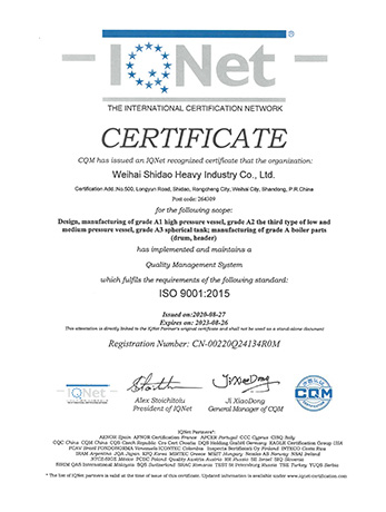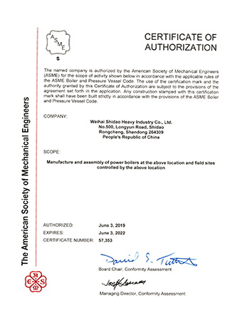 Weihai Shidao Heavy Industry Co., Ltd. inherits Mount Taishan Group's long experience in manufacturing boiler and pressure vessels, and has successively obtained the manufacturing and design licenses for A1, A2 and A3 pressure vessels officially issued by the state. With the outward development of the product, it has obtained ASME certification in the United States.