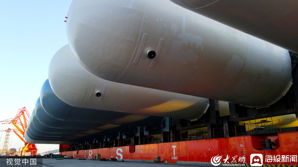 2022年11月2日,山東威海,石島重工有限公司為非洲安哥拉制造的大型石油液化氣儲罐,首批在榮成市石島港正式啟運(yùn),將通過海運(yùn)運(yùn)往非洲國家?! ?jù)了解,這些被稱為超大“子彈罐”的“巨無霸”,每臺直徑8米…