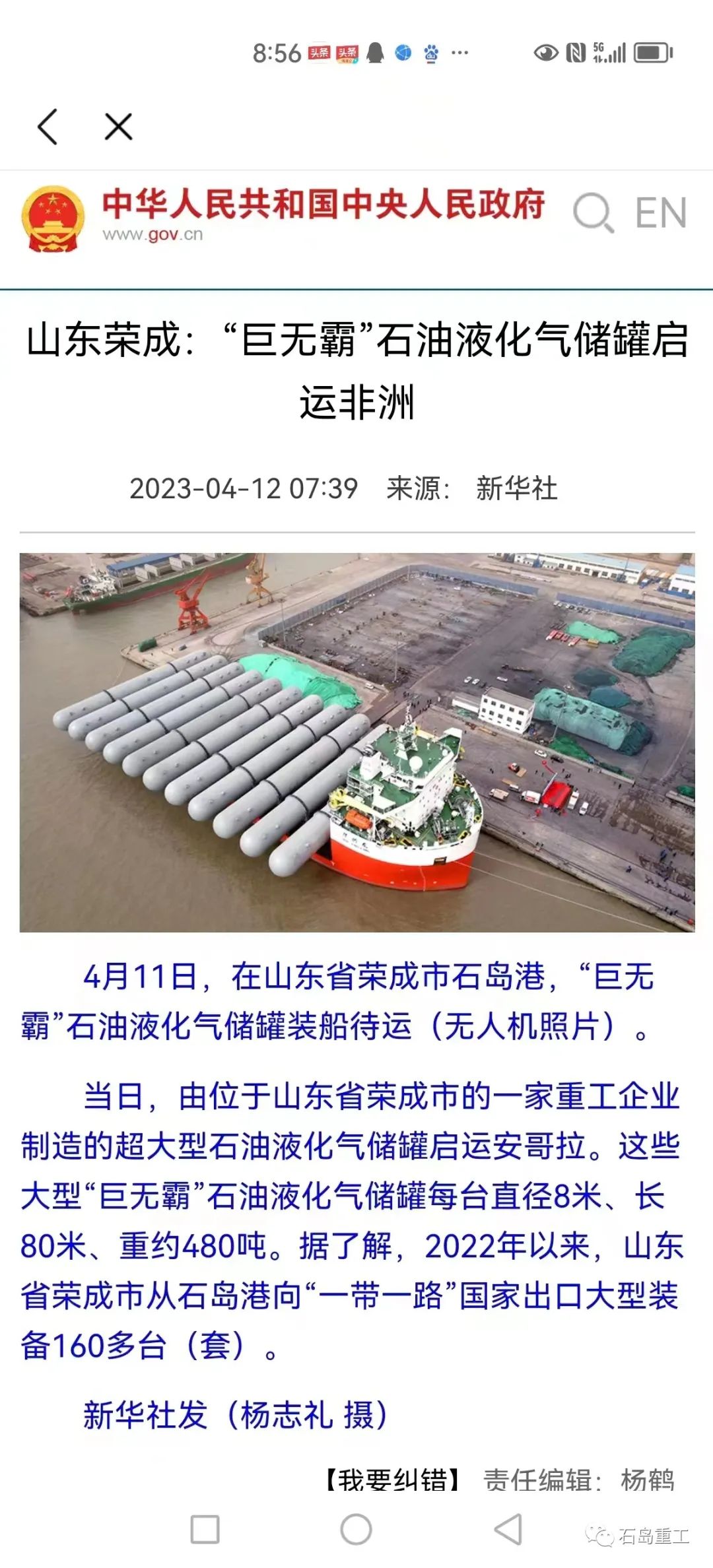 石島重工安哥拉LPG項(xiàng)目裝船發(fā)貨啟運(yùn)非洲新聞受到多家主流媒體報(bào)道